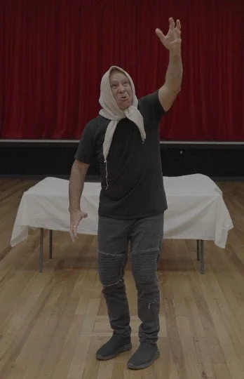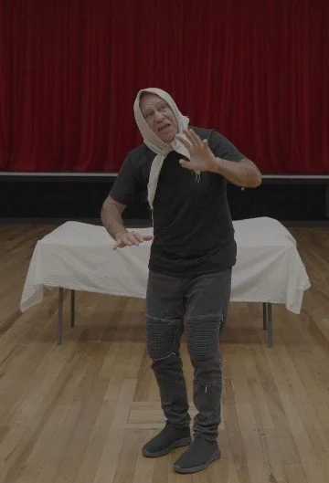 Through Dorita’s input we ended up with: one man, a suitcase, table, three chairs — and a story.